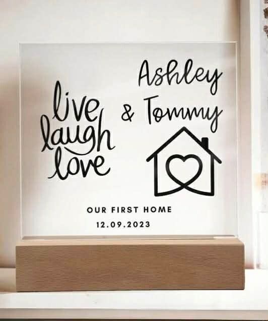 Maak van een huis een thuis met dit stijlvolle acryl bord, volledig gepersonaliseerd met de namen van de bewoners. Een minimalistisch en tijdloos design waarin de namen centraal staan – perfect als blijvende herinnering aan een nieuw begin.
